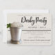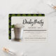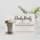 Convide seus hóspedes em estilo com este convite moderno com uma fotografia de um coquetel clássico de mint julep. A frente incorpora texto em tons de verde, preto e cremoso bronzeado. As palavras 'Derby Party' são criadas como um trabalho de arte que você pode excluir e substituir por uma linha de texto se quiser alterar o título da sua parte. O texto restante é totalmente personalizável usando modelos fáceis e fornecidos. O verso é impresso com um estilo clássico e divertido em tons de verde, preto e bronzeado, dando um olhar tradicional de corrida ao convite. Perfeito para Derby Day ou qualquer evento temático de corrida de cavalos!
