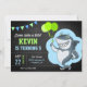 Incomode seus hóspedes com este convite de aniversário temático de tubarão apresentando um tubarão fofo segurando balões verdes com tipografia moderna contra um fundo de bordo. Basta adicionar os detalhes do seu evento neste modelo fácil de usar para torná-lo um convite de tipo único. Sacudir a placa para revelar um padrão de chave de cinza elegante na parte traseira da placa.