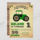 Encontrem seus hóspedes com este legal tema de trator, convidando com um trator de fazenda verde bonitinho com tipografia vibrante em um pergaminho de vinheta. Basta adicionar os detalhes do seu evento neste modelo fácil de usar para torná-lo um convite de tipo único. Sacudir a placa para revelar uma textura rústica de madeira de celeiro na parte traseira da placa.