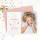 Rainbow Sprinkles Kids Os Convites de aniversário de fotos apresentam aspernos pastel candy, nome e idade negros, chapéus de festas e fotos verticais. Personalize o texto usando o botão Editar para personalizar seus convites.