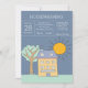 Festa de aquecimento da casa - novos convites de Ricaso - apresentando uma pequena casa amarela ao lado de uma árvore com o sol no céu azul