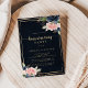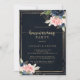 Este convite de festas geométrico de ouro floral é perfeito para um evento rústico. O design apresenta belas flores azuis escuras pintadas manualmente, azuis, marinhos, cor-de-rosa, pinceladas, douradas e folhagem verde, enfeitando um quadro geométrico.