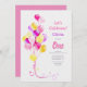 Convide os seus amigos para que ajudem a celebrar o primeiro aniversário da sua filha com este convite de aniversário de balão colorido, cor-de-rosa, pintado.