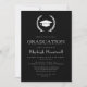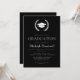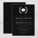Este clássico design de convite de festa de formatura apresenta uma coroa de louros branca moldando um boné de formatura em branco sobre um fundo preto. O ano de classe editável aparece na fonte de serif aberta preta no boné. Personalize o texto com o nome do formando e os detalhes da parte. A parte traseira da placa é preta e sólida. Ideal para segundo grau, faculdade ou formando universitário.
