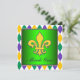 Verde do divertimento e convite de festas roxos do carnaval do ouro. As cores tradicionais coloridas deste carnaval do roxo, do ouro e das características do verde três cocktail do carnaval terminam com miçanga, máscara, e flor de lis do carnaval. Este convite de festas colorido do carnaval trabalha bem para um convite de festas gordo de terça-feira, convite de festas do mascarada, convite de festas do carnaval, ou todo o outro partido ou evento com um tema do carnaval. Este é um design do modelo e é personalizado facilmente para seu partido ou o evento simplesmente escolhendo a laranja "personaliza-a!" abotoe para começar a adicionar seus detalhes do evento, estilo de pia batismal, tamanho & cor de pia batismal, e expressão. Note por favor - todos os chapéus de coco do bolo, cartões e design que do convite você encontrará em Zazzle são gráficos impressos sem jóias reais, as peças dos arcos, levantado, gravada, ou adicionada ou as partes.