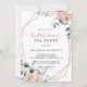 Este convite de festas de chá de chá de panela clássico geométrico é perfeito para um chá de casamento rústico. O design apresenta rosas poeirentos elegantes e cor d'água e folhagem verde, perfeitamente reunidos em belos buquês, enfeitando uma encantadora estrutura geométrica.