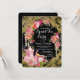 Convite de festas de chá elegante com rosa rosa bonito, pérolas elegantes e bule de chá rosa e teacup num lindo fundo de espiral preto e ouro. Este elegante convite de festas de chá de noiva é facilmente personalizado para o seu evento, adicionando os seus detalhes no estilo de letra e cor, bem como o texto da sua escolha. Você também pode alterar a cor de fundo.