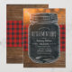 Convites do Partido do CHURRASCO de Reforma Russo, Mason Jar. Apresentar uma ilustração criativa de um jarro de pedras em um fundo de madeira e toalha de mesa. Uma bela tipografia de texto - você pode editar. Perfeito para festas de aposentadoria rústicas! Projetado por http://superdazzle.com