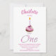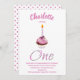 O primeiro convite de aniversário de uma menina com um cupcake com gelo cor-de-rosa e uma vela acesa com solteiro no topo. O texto cor-de-rosa é facilmente personalizável para que você inclua seus próprios detalhes. A parte traseira da placa está coberta por bolinhas rosa bonito.