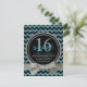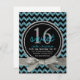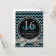 Convide amigos e família à festa de aniversário do doce décimo sexto de uma menina especial com este convite azul do teste padrão de ziguezague da viga do aqua funky! Aqua do estilo do brilho do falso ou tipo brilhante de turquesa azul e impressão preto contínuo da zebra, acentuado com uma fita e um arco glittery de prata bonito do estilo, e círculo rodeado dobro com as cinzas e o texto cor-de-rosa de harmonização que anunciam uns 16 doces. Quatro áreas de texto customizeable para sua informação do partido. Diversos outros produtos de coordenação disponíveis na loja para uma celebração temático do aniversário. Também disponível em outros cores e padrões.