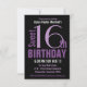 Está aqui um convite personalizado simples e fácil projetado para celebração da festa de aniversário do doce da sua filha a 16a. Personalize de maneira rápida e fácil as áreas de texto para serir sua décima sexta informação de evento da celebração da festa de aniversário. Texto fácil de ler do estilo da letra de bloco em máscaras femininos bonito da violeta africana, do roxo e do branco em um fundo preto liso.
