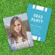 Anúncio de graduação de fotos no estilo varisity e convite de festas de formando. O convite tem um padrão de listras brancas em relação a uma cor de fundo editável (clique em personalizar para alterar) no verso. Personalize-o substituindo o texto do marcador de posição e substitua a foto do marcador de amostra/marcador de posição por sua própria foto. Para obter mais opções, como alterar a fonte e seu tamanho/cor ou o espaçamento entre letras, clique no botão "Personalizar". *Observe que a Marca d'água do Zazzle que aparece na visualização de zoom NÃO aparecerá no produto impresso final. © Rosewood e Citrus