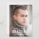 Anúncio de graduação de fotos no estilo varisity e convite de festas de formando. O convite tem um padrão de listras brancas em relação a uma cor de fundo editável (clique em personalizar para alterar) no verso. Personalize-o substituindo o texto do marcador de posição e substitua a foto do marcador de amostra/marcador de posição por sua própria foto. Para obter mais opções, como alterar a fonte e seu tamanho/cor ou o espaçamento entre letras, clique no botão "Personalizar". *Observe que a Marca d'água do Zazzle que aparece na visualização de zoom NÃO aparecerá no produto impresso final. © Rosewood e Citrus