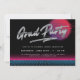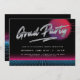 Este convite para festa de formatura de temas divertidos apresenta gráficos retrorreflectores e tipografia de cromo vintage sobre um fundo preto. É o design perfeito para uma festa de formatura retrô.