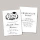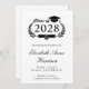 Convite de festas moderno com "Classe de", ilustrando uma coroa de louro com formando superior e diploma, e o nome do formando, em um roteiro elegante. Adicione sua escola, sua maior, honras ou planos futuros e os detalhes da festa de formatura em uma simples tipografia.