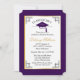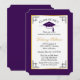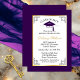 Anúncio e convite de festas elegante de boné de formatura roxo escuro e tom dourado na faculdade ou universidade, subestimado com um filtro de aparência antiga aplicado. Simplesmente personalize com seus detalhes de celebração. Design por Holiday Hearts Design (direitos reservados).