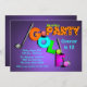 Néon brilhante como cores com um convite de golfe em miniatura de fundo roxo. Personalize conforme necessário.