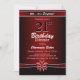 Convite de festas de janto vibrante, vermelho e preto, com texto branco e fita e arco vermelho e branco. Substitua os detalhes deste convite por você para criar o convite de aniversário surpresa perfeito para o seu evento.