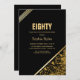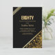Um moderno e sofisticado convite de festas de aniversário de 80 preto e ouro.