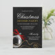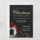 Convide seus hóspedes em estilo com estes convites de festas de Natal elegantes. Apresentando um ornamento prateado, arco vermelho e bruxelas douradas sobre fundo preto. Perfeito para festas corporativas, festas de férias de negócios, festas de férias de empresa e muito mais. Personalize facilmente o seu evento especial. Designs são ilustrações/gráficos impressos planos - NÃO EMBELÉCIES REAIS.
