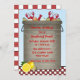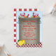 Um convite do divertimento para um partido da fervura ou do marisco do caranguejo. O texto do partido é colocado no pote grande dos caranguejos, do milho, das cebolas e das batatas. O pote senta-se na beira checkered vermelha com limões. O teste padrão Checkered suporta sobre do cartão demasiado.