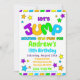 Encontrem todos os seus convidados animados para a sua festa com este convite brilhante e divertido!