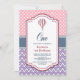 Convide seus amigos e entes queridos com este convite de festas de primeiro aniversario de balão de ar quente rosa e lavanda que está decorado com bolinhas e faixas de diafragma.