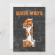 Celebre o primeiro aniversário de sua futura estrela de basquete com este convite moderno com um design de quadro. A frente do convite tem um grande número 1 com bolas de basquete dentro, com o texto, "Adivinha quem". A parte de trás do convite apresenta o mesmo design de quadro com um padrão sutil de termos de basquete com texto personalizável para detalhes de seu partido na coordenação de cor laranja e branca. Se você quiser este convite com um número diferente na frente, entre em contato conosco através da nossa loja de CelebrationBazaar e ficaremos felizes em criar para você.