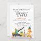 Apresentando nosso vibrante convite de aniversário de garoto com um tema de construção que certamente tornará seu dia especial ainda mais memorável! Este convite exclusivo apresenta dinossauros adoráveis que assumem o comando do equipamento de construção, acrescentando um toque lúdico ao design. Perfeito para uma celebração de aniversário de 1rua, segundo ou qualquer idade, este convite dá o tom para uma festa inesquecível. Tudo começa com a frase "Dump All" capturando o entusiasmo no ar. Então, vá em frente e convide seus convidados para se juntarem à diversão de construção com este charmoso design de convite!