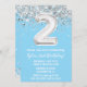 Azul claro e prateado 2º convite de aniversário de idade 2 convite de aniversário com brilho e escrevendo moderno de escrita e balões de folha divertida.