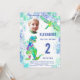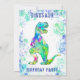 Uma festa de aniversário de dinossauros segundo azul e verde colorida divertida, azul e verde, para a criança que ama dinossauros. Colorida Rex e convite de aniversário pterodátilo Jurássico voador para fãs Dino por uma divertida segunda festa de aniversário. Personalize este psicodélico pré-histórico Tyrannosaurus rex e pterodactyl design com uma fotografia, o número de anos e os detalhes da festa na divertida tipografia moderna e vocês estão prontos para uma festa de aniversário temática de dinossauro excelente. Todas as espécies de dinossauros são bem-vindas. Ilustração original de arte por Catherine Sweetman