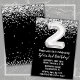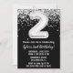 Convite de aniversário preto e branco 2ª idade 2 convite de aniversário com brilho e escrevendo moderno de escrita e balões de folha divertida.