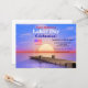 Um convite de festas no fim do verão do Dia do Trabalho com um pôr do sol e doca e bandeira americana. Altere o texto de exemplo para o seu próprio endereço, etc., para se adequar ao seu evento.