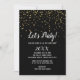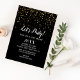 Este Confetti do Partido do Vamos no Convite de festas de Ano Novo Negro é perfeito para uma celebração de Anos novos de classe. O design apresenta um confete de ouro falso de tendência em um fundo preto com uma elegante caligrafia branca.