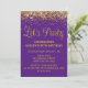 Convites Partido do Vamos de Glitter Roxo e Dourado