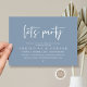 Escrito moderno minimalista, cartão de convite para elopementos de casamento (festa de vamos) em tema azul empoeirado. É perfeito para seu elopeio de casamento/convite para comemoração de posto. Edite com os detalhes do convite para comemoração do casamento. Projetado por Teesha e Derrick.