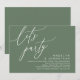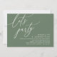 Marque o começo de sua eternidade com elegância usando nosso romântico sábio, contemporâneo, tema verde do casamento elopemento feliz para sempre após o almoço, brunch, recepcionista de festa jante de recepção, convite para festas, "Partido Vamos". Perfeito para os casais estendendo sua alegre ocasião, este convite exude sofisticação com uma sugestão de brincadeira, definindo o palco para um evento memorável. Adorado com um tema design de roteiro moderno de eterno, ele adiciona um toque de encanto refinado às suas festividades. Feito por TeeshaDerrick, este convite promete capturar maravilhosamente sua história de amor.