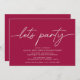 Convites de aniversário simples e modernos com texto de título lendo "festa de vamos". Adicione os detalhes do evento abaixo. Texto branco sobre fundo vermelho-rosado-escuro.