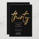 Mínimo Dourado e Preto Moderno Personalizável, Trinta Convites de Aniversário! Uma caligrafia única em FAUX DOURADA, lê 40 com um simples e elegante design preto e ouro. Torne o seu aniversário milestone inesquecível com este convite de aniversário adulto na moda. Use os detalhes da seção "Personalizar este modelo" para adicionar suas informações e Escolha entre impressões ou um download de convite digital ecologicamente correto. Design original do Ana Garza/Kardz Studio. Se tiver alguma pergunta, por favor contacte-me através do bate-papo Zazzle.