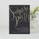 O convite de festas surpreendente moderno apresenta um roteiro de na moda-caligrafia de festa surpresa e brilha em cores falsas em folha de ouro sobre fundo preto, simples e limpo, convite de aniversário para adultos surpresa de excelente para qualquer idade. A cor preta de fundo pode ser alterada para qualquer cor de sua escolha.