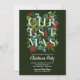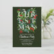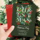A palavra NATAL com verde e bagas sotaque suas informações de festas em caracteres chicos nesses convites de festas de Natal verde-escuro. CORRESPONDENTE a itens na nossa coleção.