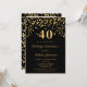 Convite de festas Elegante de aniversário de 40 anos preto e Dourado