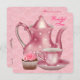 Fundo cor-de-rosa elegante com um bule de chá de bolinhas cor-de-rosa e branco, um convite de festas de chá de chiclete e cupcake. Este bonito convite de festas de chá de cor rosa-rosa é facilmente personalizado para a sua festa ou evento simplesmente adicionando os detalhes do evento, estilo de fonte, tamanho de fonte e cor e texto. Observe que todos os designs de cartas e convites que você encontrará no Zazzle são gráficos impressos sem joias reais, arcos, levantados, gravados em relevo ou peças ou peças adicionadas.