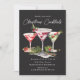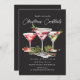 Elegante convite de festas de cocktails festivos com ilustrações temáticas de férias em conjunto com uma combinação de serifa e letra de escrita. Veja na nossa loja mais convites de festas de coquetel.