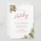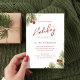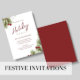Esta design apresenta convites elegantes para festas de férias, um design de aquarela fofo, com verde e vermelho, verde de pinheiros, tradicional festiva, bagas ocas, com folhagem simples minimalista, clássica, na moda, convida para a festa de Natal