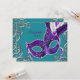Bonita máscara de penas roxa prata e convite de festas azul-turquesa. Este elegante convite de festas azul teal e roxo é facilmente personalizado para o seu evento, simplesmente escolhendo o botão "Personalizar!" para começar a adicionar os detalhes do evento, estilo de fonte, tamanho de fonte e cor e texto. Observe que todos os designs de cartas e convites que você encontrará no Zazzle são gráficos impressos sem joias reais, arcos, levantados, gravados em relevo ou peças ou peças adicionadas.
