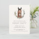 Convite de festas de Derby da Corrida Moderna de Cavalo com uma ilustração em estilo aquarela de um cavalo de corrida e a coroa da vitória. Todos os elementos de texto podem ser alterados para que este design possa ser usado para outros eventos também: convite para casamento equestre clássico, festa de aniversário de cavalo, festa de relógio derby, abertura de celeiro de cavalo e muito mais. Fundo, cor da ilustração e cores do texto podem ser alteradas com a ferramenta design!