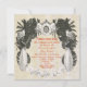 Um tema do Moorish com palmas, as sultões e os elementos árabes no preto em um damasco do marfim cercam o texto para uma festa de noivado, um despedida de solteiro, um chá de Jack & de Jill ou um partido do tema com o emblema da pena do pavão e a parte traseira do quadro sobre.