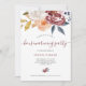 Este convite de festas na moda do housewarming caracteriza um buquê floral da aguarela bonita, com flores e folhas nas máscaras de Borgonha, de pêssego, de cinzas azuis, de branco, e do ouro amarelo. A tipografia moderna do roteiro adiciona um toque à moda. Este convite de festas do housewarming é especialmente perfeito para celebrações de Borgonha, rústicas, e de outono.