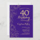 Convite de festas Floral Dourado roxo. Design minimalista moderno com desenhos botânicos em destaque, folha de ouro falsa e letra de script de tipografia. Simples trendy convida cartão perfeito para uma festa de na moda. Pode ser personalizado para qualquer idade. Impressos convites Zazzle ou modelo de impressão digital instantânea para download.